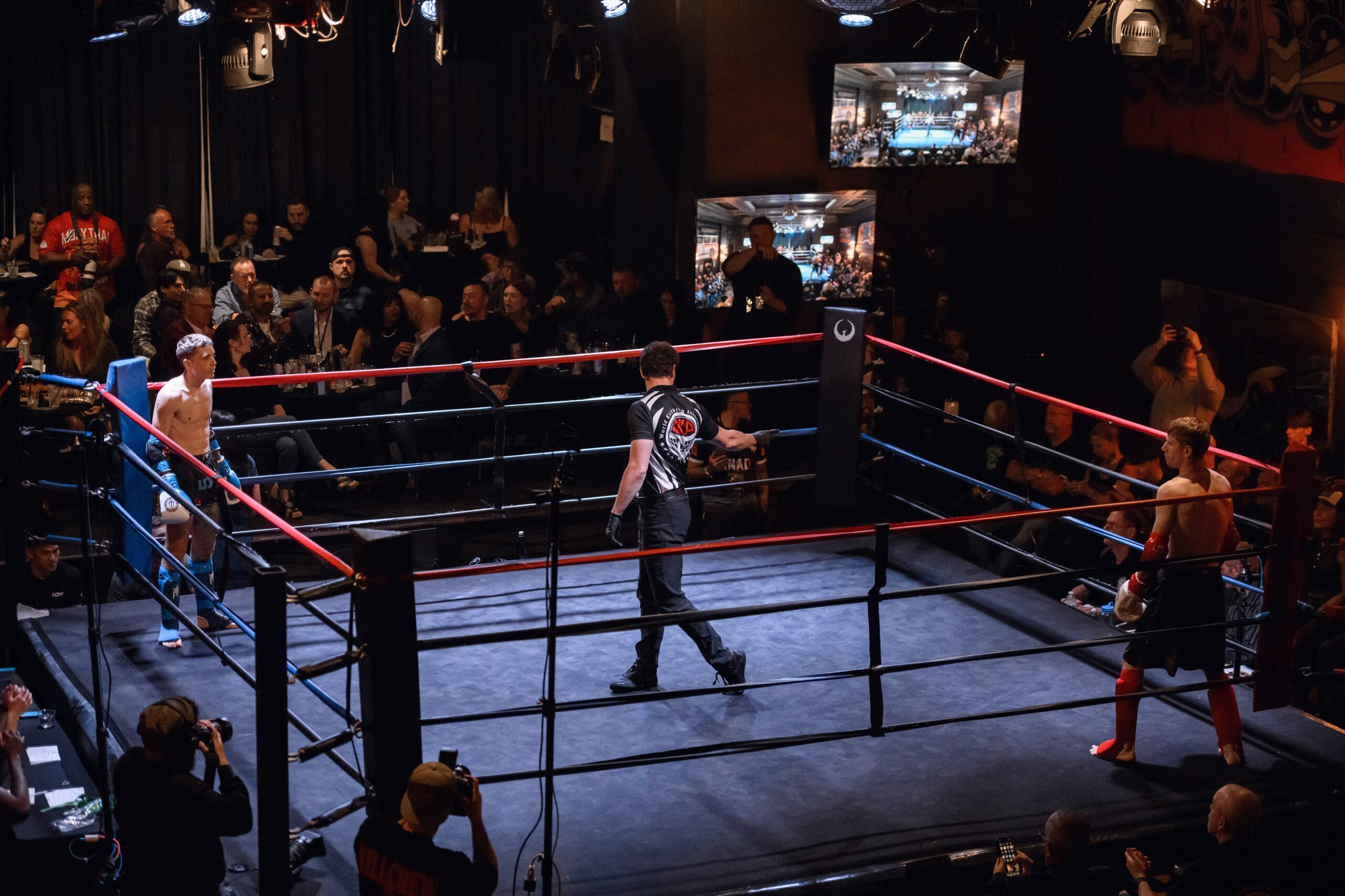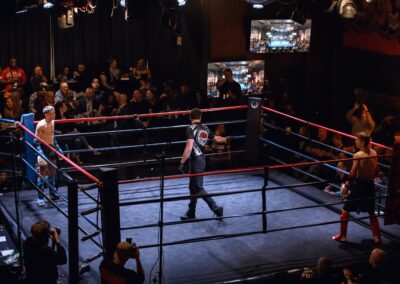 Training focuses on ring strategy, advanced combinations, conditioning under pressure, and supervised sparring sessions. Athletes are coached on pacing, discipline, and fight preparation.